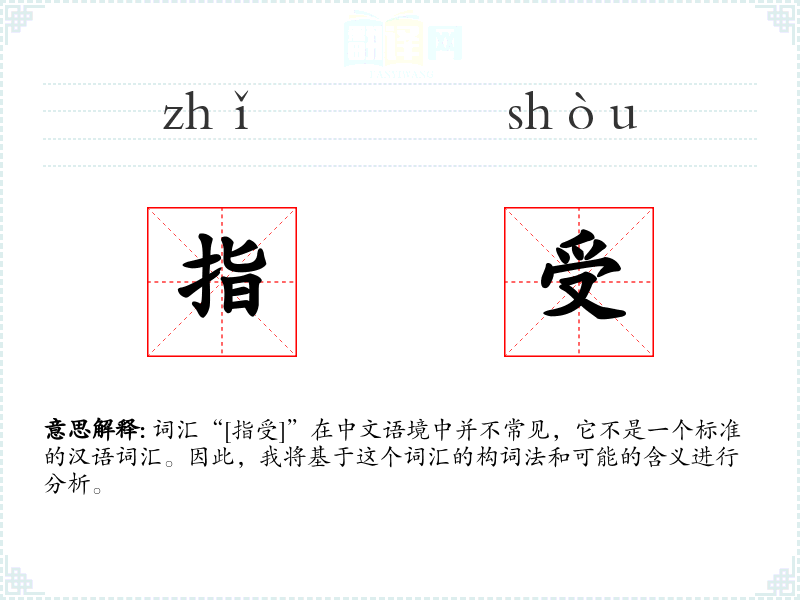 词汇“[指受]”在中文语境中并不常见,它不是一个标准的汉语词汇。因此,我将基于这个词汇的构词法和可能的含义进行分析。