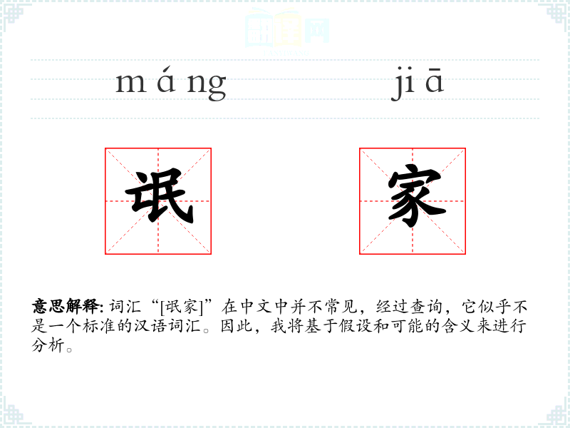 词汇“[氓家]”在中文中并不常见,经过查询,它似乎不是一个标准的汉语词汇。因此,我将基于假设和可能的含义来进行分析。