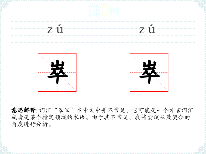 词汇“崒崒”在中文中并不常见,它可能是一个方言词汇或者是某个特定领域的术语。由于其不常见,我将尝试从最契合的角度进行分析。