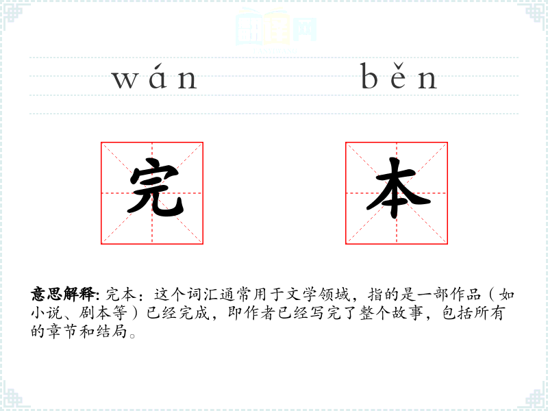 - 专业领域:在出版和编辑领域,“完本”可能指的是作者提交的完整稿件,准备进入出版流程。