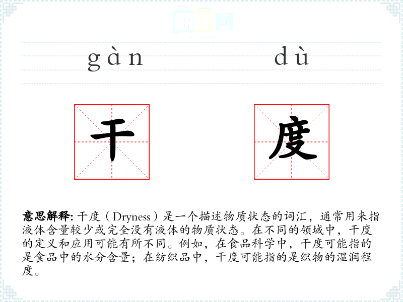 "干度"的意思解释、干度是什么意思由翻译网汉语词典查词提供。