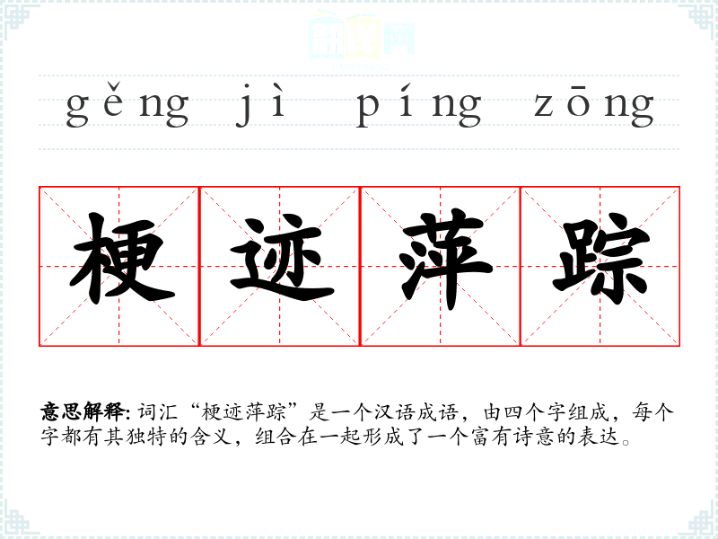 词汇“梗迹萍踪”是一个汉语成语,由四个字组成,每个字都有其独特的含义,组合在一起形成了一个富有诗意的表达。
