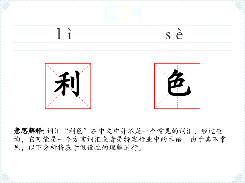 词汇“利色”在中文中并不是一个常见的词汇,经过查询,它可能是一个方言词汇或者是特定行业中的术语。由于其不常见,以下分析将基于假设性的理解进行。