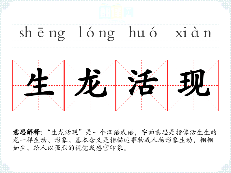 “生龙活现”这个成语的词源较为模糊,但它显然与“龙”这一文化中的重要象征有关。龙在文化中象征着力量、尊贵和吉祥,因此“生龙活现”也蕴含着强烈的正面意义。