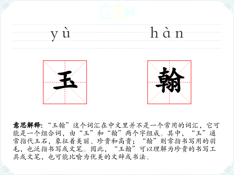 玉翰的意思