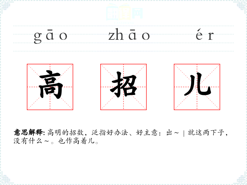 高明的招数,泛指好办法、好主意:出~|就这两下子,没有什么~。也作高着儿。