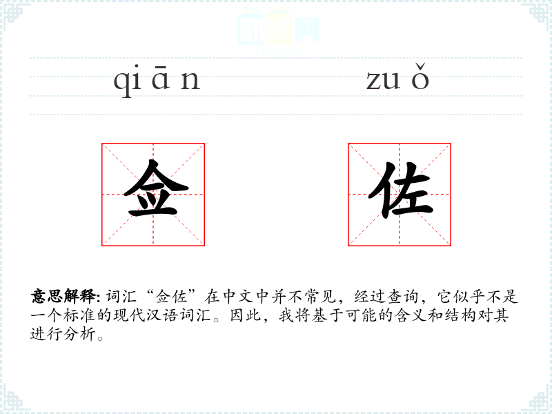 词汇“佥佐”在中文中并不常见,经过查询,它似乎不是一个标准的现代汉语词汇。因此,我将基于可能的含义和结构对其进行分析。