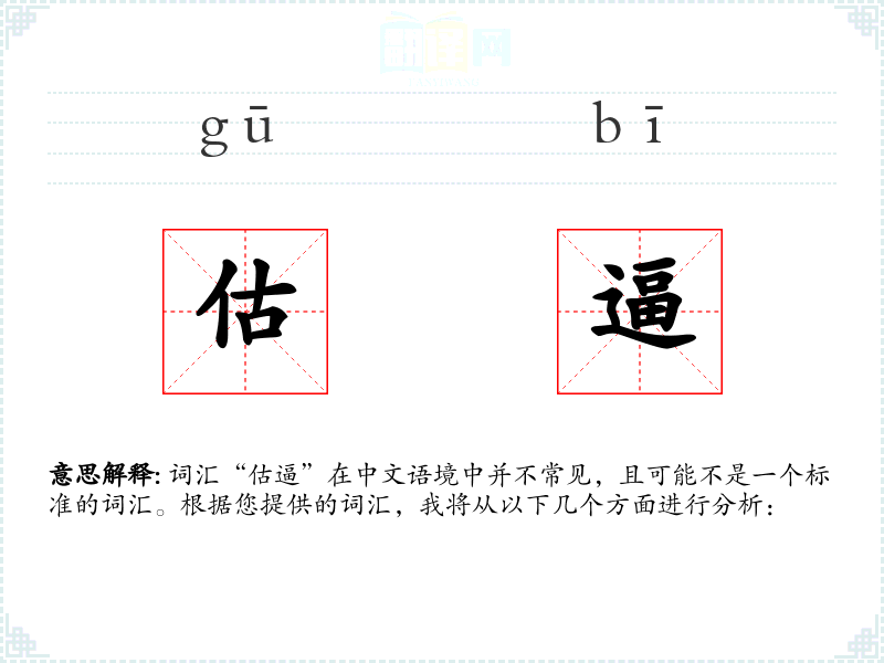 词汇“估逼”在中文语境中并不常见,且可能不是一个标准的词汇。根据您提供的词汇,我将从以下几个方面进行分析: