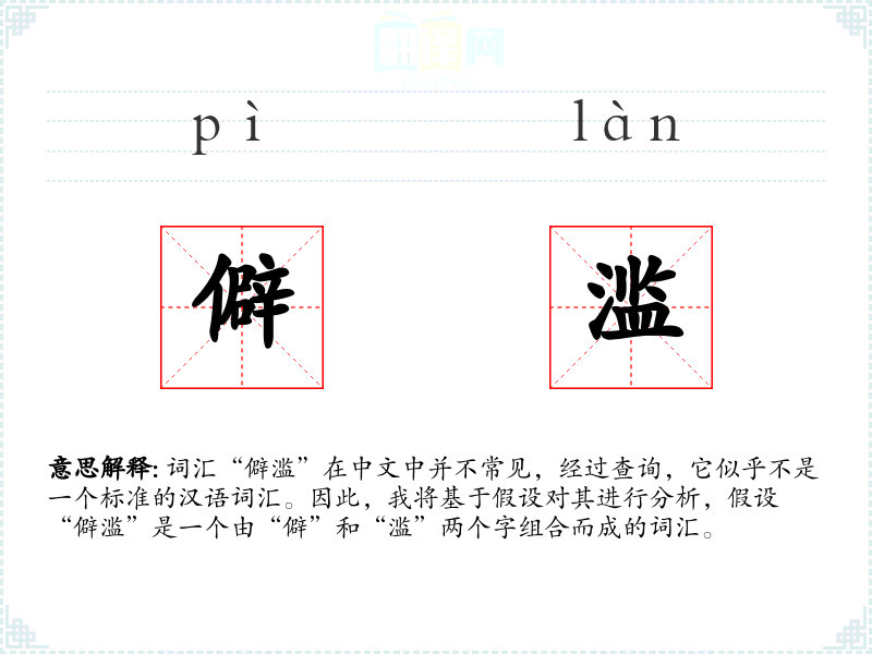 词汇“僻滥”在中文中并不常见,经过查询,它似乎不是一个标准的汉语词汇。因此,我将基于假设对其进行分析,假设“僻滥”是一个由“僻”和“滥”两个字组合而成的词汇。