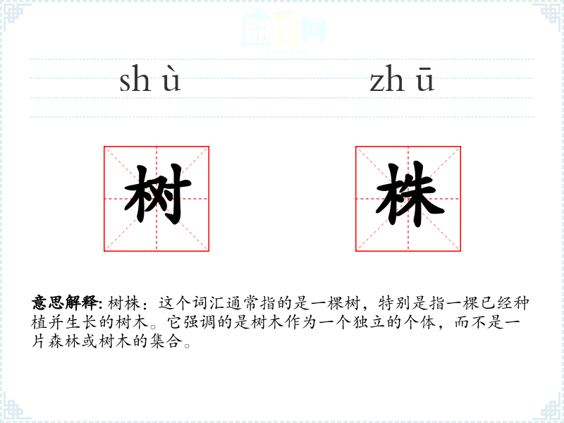 - 反义词:无(因为树株本身是一个中性词,没有直接的反义词)
