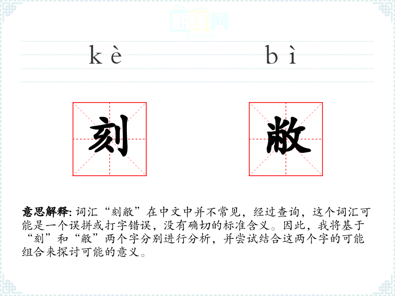 词汇“刻敝”在中文中并不常见,经过查询,这个词汇可能是一个误拼或打字错误,没有确切的标准含义。因此,我将基于“刻”和“敝”两个字分别进行分析,并尝试结合这两个字的可能组合来探讨可能的意义。