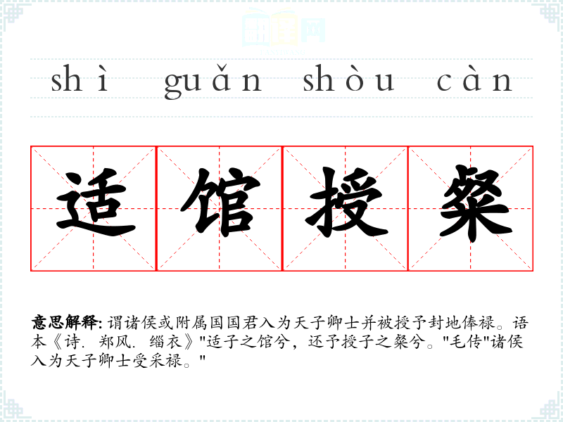谓诸侯或附属国国君入为天子卿士并被授予封地俸禄。语本《诗.郑风.缁衣》"适子之馆兮,还予授子之粲兮。"毛传"诸侯入为天子卿士受采禄。"