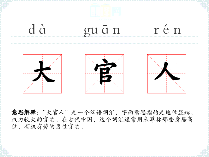 想象一幅画面:一位身着官服的“大官人”在古代宫殿中行走,背景音乐是古筝的悠扬旋律,这样的视觉和听觉联想能够增强这个词汇的历史感和文化氛围。
