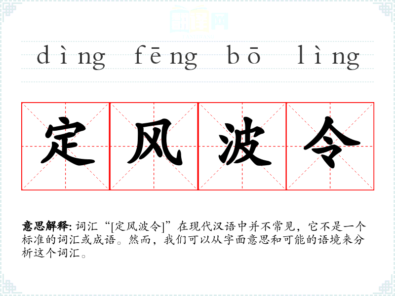 词汇“[定风波令]”在现代汉语中并不常见,它不是一个标准的词汇或成语。然而,我们可以从字面意思和可能的语境来分析这个词汇。