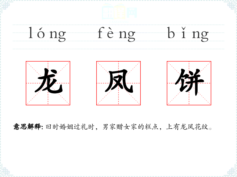 旧时婚姻过礼时,男家赠女家的糕点,上有龙凤花纹。
