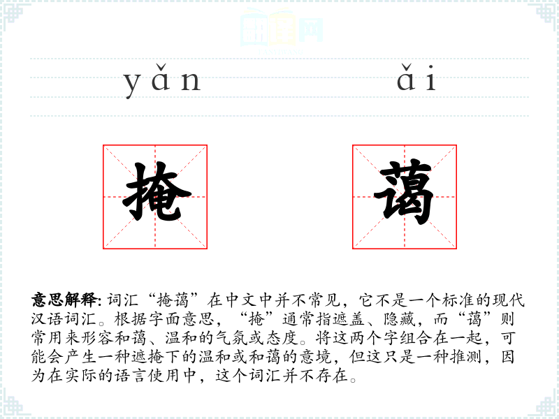 "掩蔼"的意思解释、掩蔼是什么意思由翻译网汉语词典查词提供。