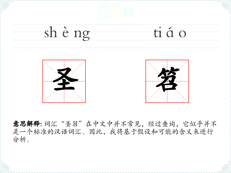词汇“圣笤”在中文中并不常见,经过查询,它似乎并不是一个标准的汉语词汇。因此,我将基于假设和可能的含义来进行分析。
