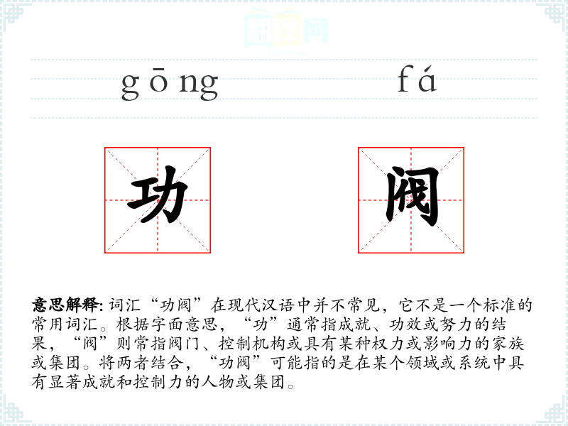 - 专业领域:在政治学、社会学或经济学等领域,可能会用“功阀”来形容那些在政策制定或资源分配中起关键作用的集团。