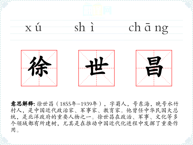 在不同语言或文化中,徐世昌的名字可能直接翻译,但其历史地位和影响可能需要更深入的解释和理解。
