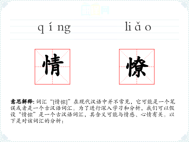 词汇“[情悰]”在现代汉语中并不常见,它可能是一个笔误或者是一个古汉语词汇。为了进行深入学习和分析,我们可以假设“情悰”是一个古汉语词汇,其含义可能与情感、心情有关。以下是对该词汇的分析: