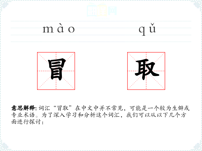 词汇“冒取”在中文中并不常见,可能是一个较为生僻或专业术语。为了深入学习和分析这个词汇,我们可以从以下几个方面进行探讨: