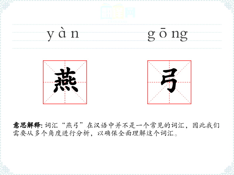 词汇“燕弓”在汉语中并不是一个常见的词汇,因此我们需要从多个角度进行分析,以确保全面理解这个词汇。