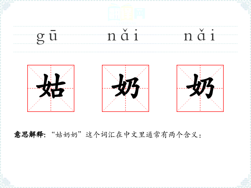 - 亲属关系中的称谓,指的是父亲的姑母,即祖父的姐妹。