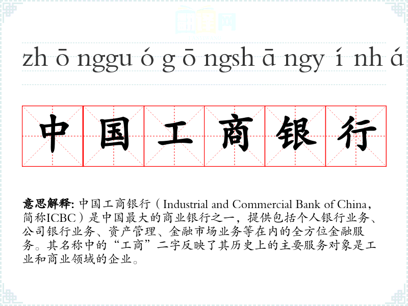 中国工商银行的分字解释