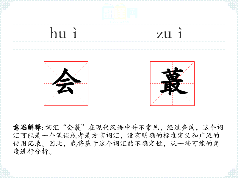 由于“会蕞”不是一个标准汉语词汇,我们无法给出确切的基本定义。它可能是一个方言词汇,或者是某个特定社群中的俚语。