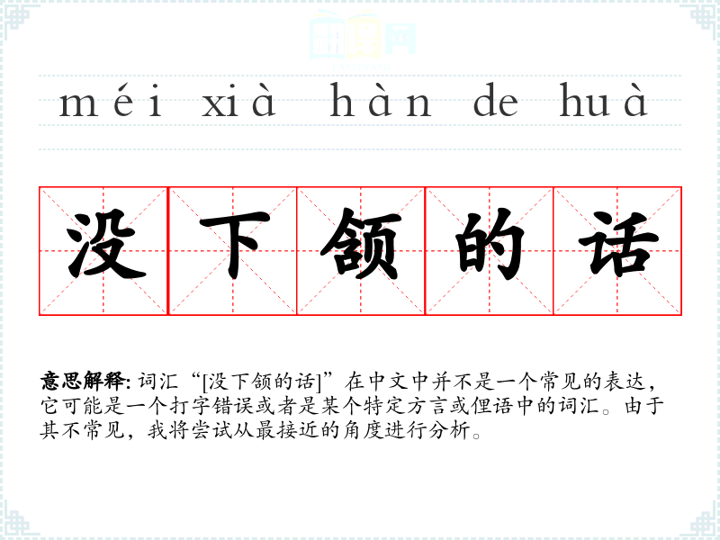 由于“[没下颔的话]”不是一个常见的汉语词汇,我们无法对其进行深入的分析和理解。在语言学习和表达中,我们应当关注那些常见且有明确意义的词汇,以确保沟通的准确性和有效性。