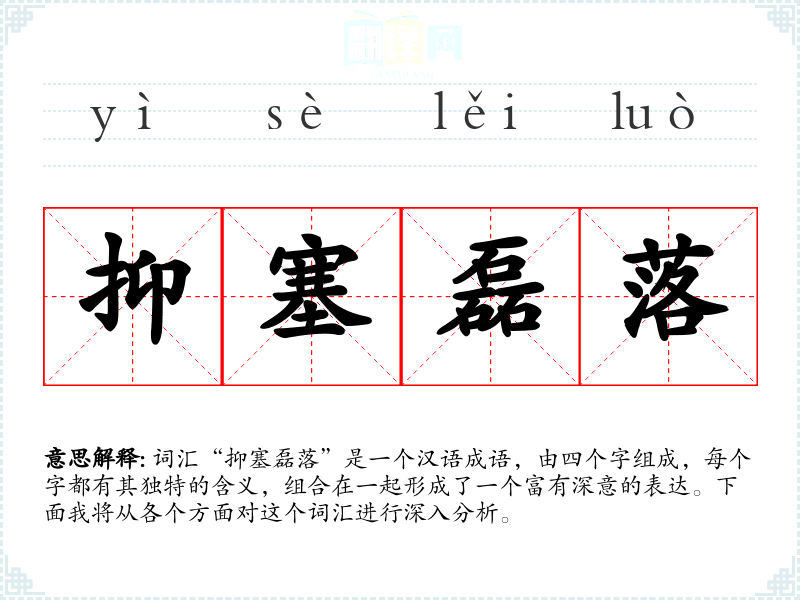 词汇“抑塞磊落”是一个汉语成语,由四个字组成,每个字都有其独特的含义,组合在一起形成了一个富有深意的表达。下面我将从各个方面对这个词汇进行深入分析。