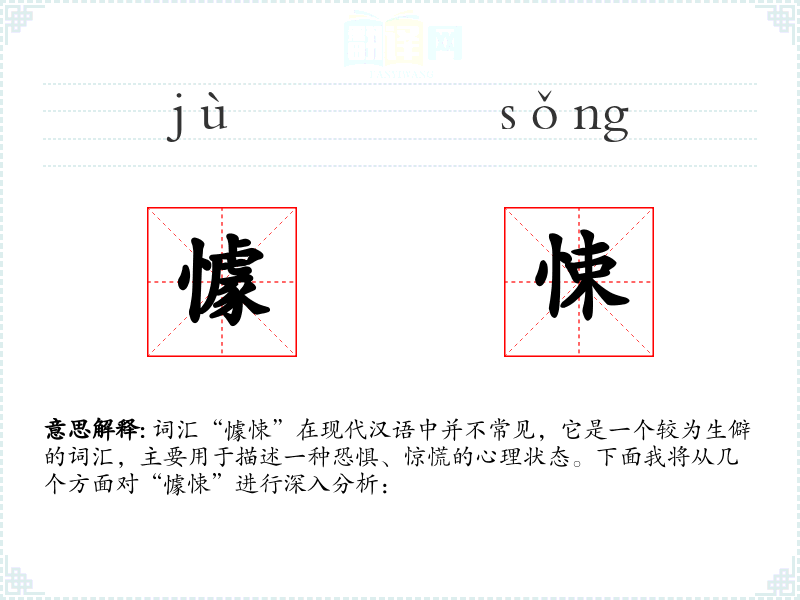 词汇“懅悚”在现代汉语中并不常见,它是一个较为生僻的词汇,主要用于描述一种恐惧、惊慌的心理状态。下面我将从几个方面对“懅悚”进行深入分析: