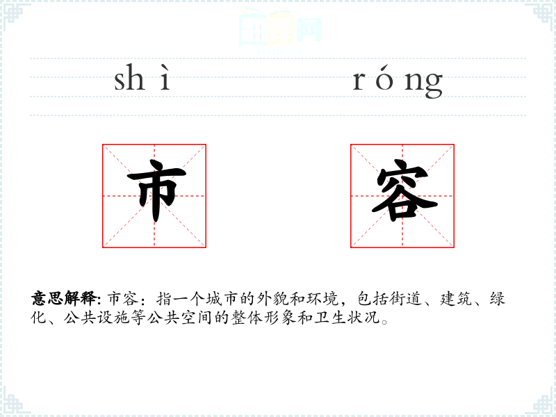 - 专业领域:在城市规划和环境管理领域,市容是一个重要的考量因素,涉及到城市形象的塑造和居民生活质量的提升。