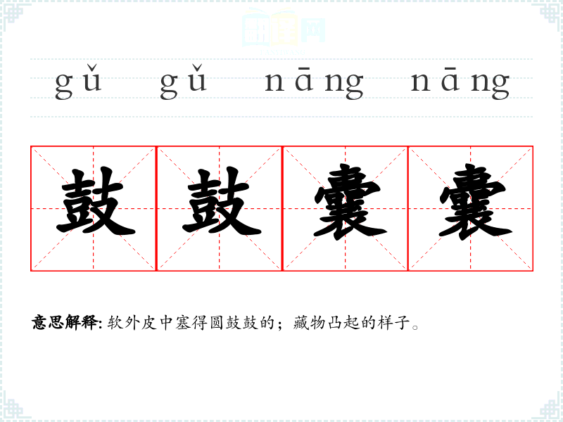 软外皮中塞得圆鼓鼓的;藏物凸起的样子。