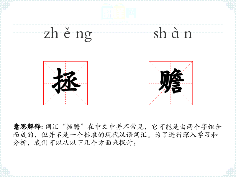 词汇“拯赡”在中文中并不常见,它可能是由两个字组合而成的,但并不是一个标准的现代汉语词汇。为了进行深入学习和分析,我们可以从以下几个方面来探讨: