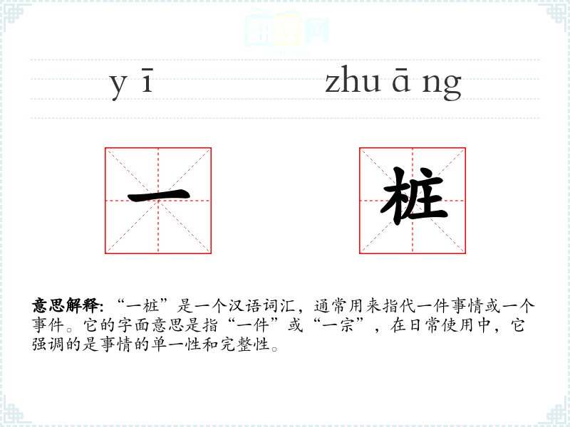 - 专业领域:在法律或商业领域,“一桩”可能特指一个案件或交易,如“一桩重大的并购案”。