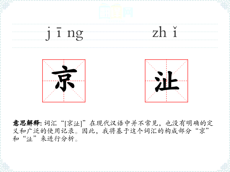 词汇“[京沚]”在现代汉语中并不常见,也没有明确的定义和广泛的使用记录。因此,我将基于这个词汇的构成部分“京”和“沚”来进行分析。