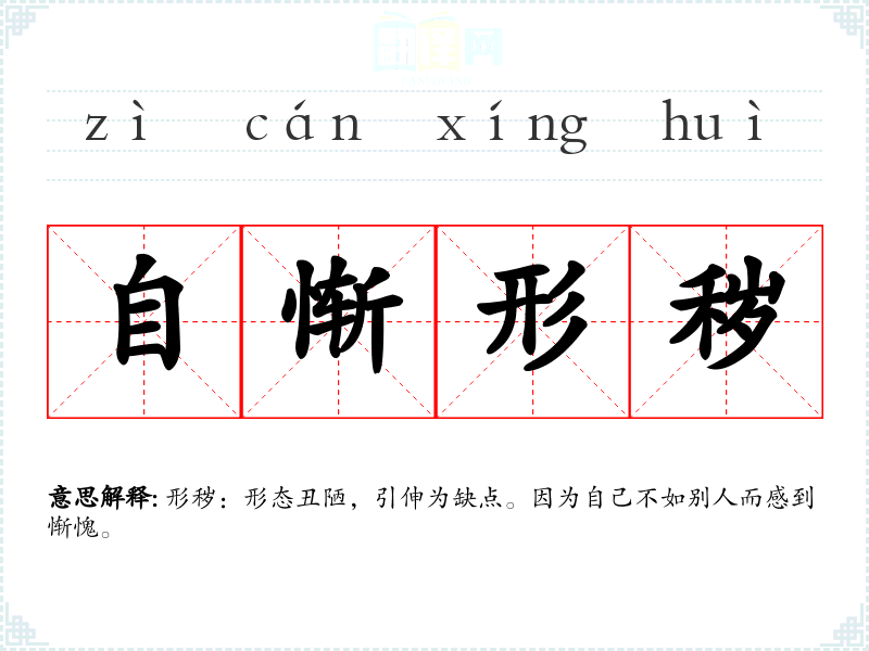 形秽:形态丑陋,引伸为缺点。因为自己不如别人而感到惭愧。