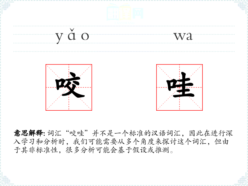 词汇“咬哇”并不是一个标准的汉语词汇,因此在进行深入学习和分析时,我们可能需要从多个角度来探讨这个词汇,但由于其非标准性,很多分析可能会基于假设或推测。