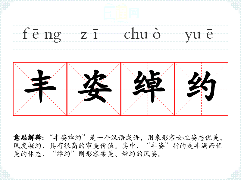 “丰姿绰约”是一个汉语成语,用来形容女性姿态优美,风度翩约,具有很高的审美价值。其中,“丰姿”指的是丰满而优美的体态,“绰约”则形容柔美、婉约的风姿。