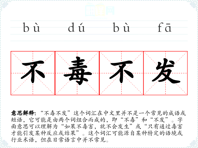 由于“不毒不发”不是一个国际通用的词汇,它在不同语言或文化中可能没有直接对应的词汇。在其他语言中,可能需要根据具体的语境来解释这个概念。