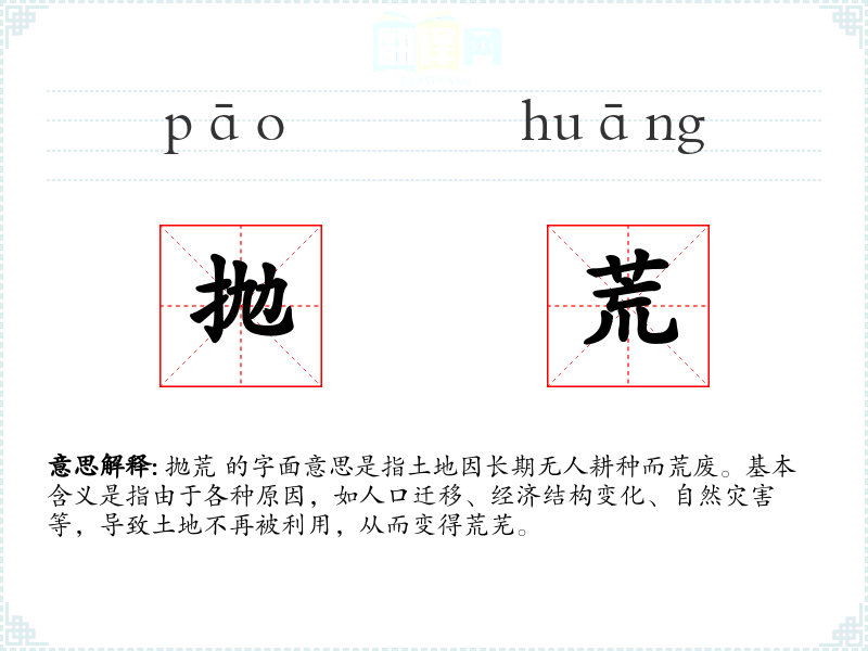 - 专业领域:在农业或地理学中,抛荒特指土地的荒废状态。