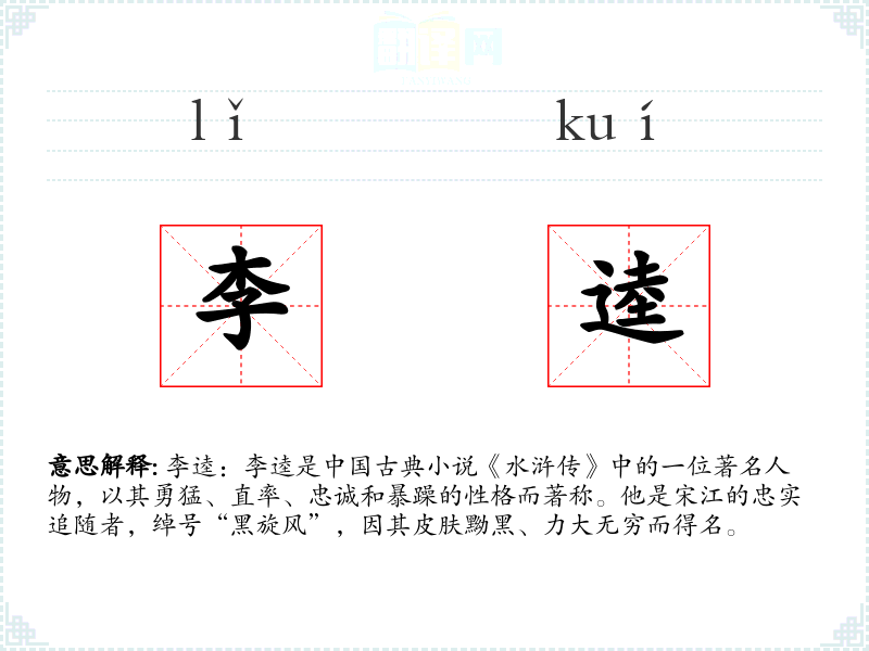 黑旋风李逵,铁斧挥舞间, 忠诚如山,勇猛无边。 水泊梁山,英雄聚首, 李逵之名,永传千古。