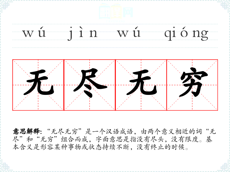 在英语中,类似的表达有“endless”和“infinite”,它们在描述时间和空间的无尽性时与“无尽无穷”有相似的含义。