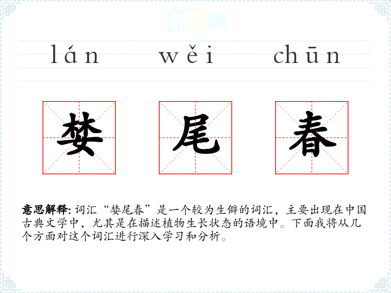 词汇“婪尾春”是一个较为生僻的词汇,主要出现在*古典文学中,尤其是在描述植物生长状态的语境中。下面我将从几个方面对这个词汇进行深入学和分析。