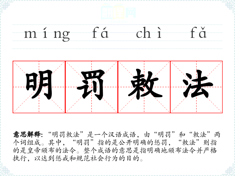 “明罚敕法”源自古代的法律制度,特别是在封建社会中,通过颁布法令来管理国家。随着时间的推移,这个词汇逐渐被用来描述任何形式的法律执行和惩罚。