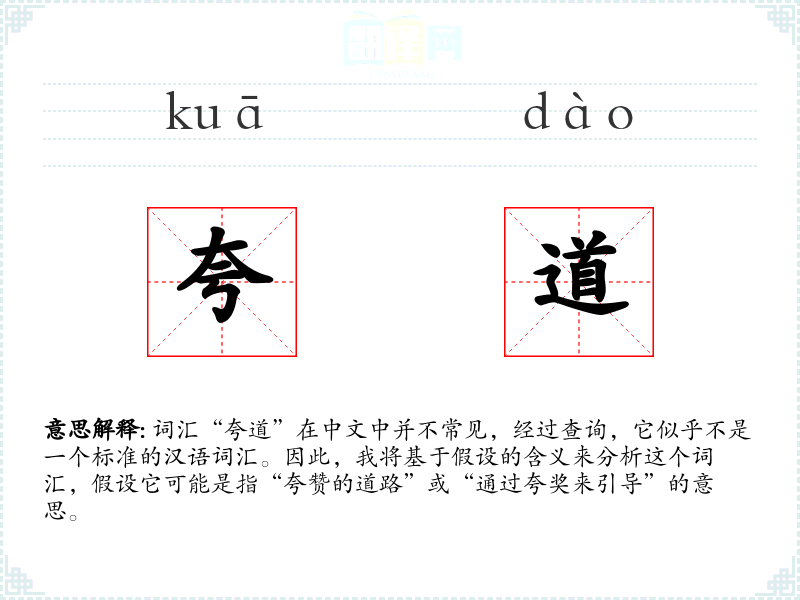 由于“夸道”不是一个标准词汇,其词源和演变不详。