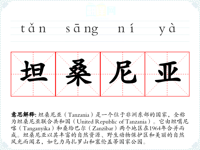 - 反义词:由于坦桑尼亚是一个具体的国家名称,没有直接的反义词。