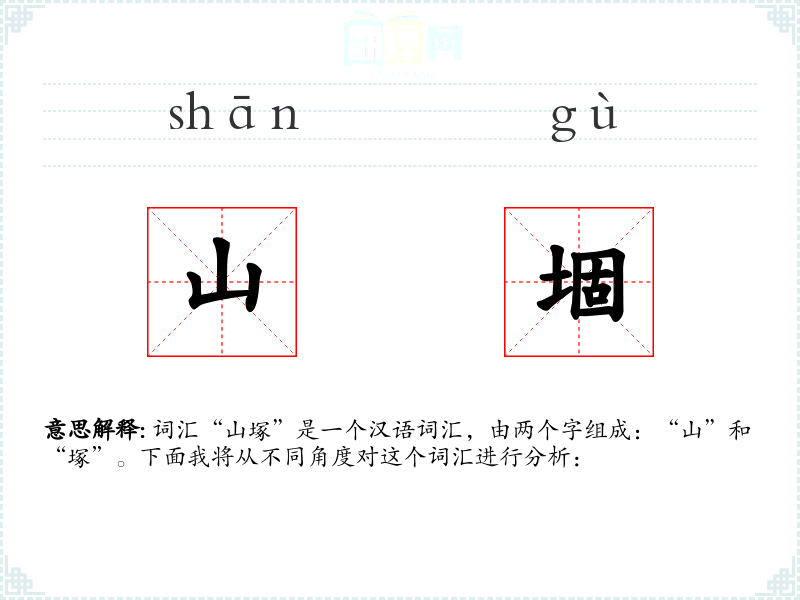 - 词源:“山”和“塚”都是古代汉语词汇,历史悠久。