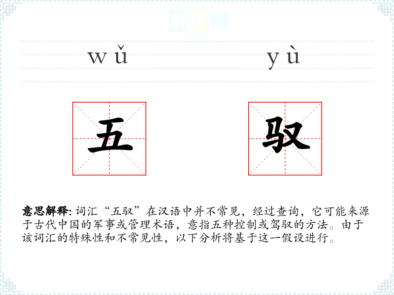 词汇“五驭”在汉语中并不常见,经过查询,它可能来源于古代**的军事或管理术语,意指五种控制或驾驭的方法。由于该词汇的特殊性和不常见性,以下分析将基于这一假设进行。